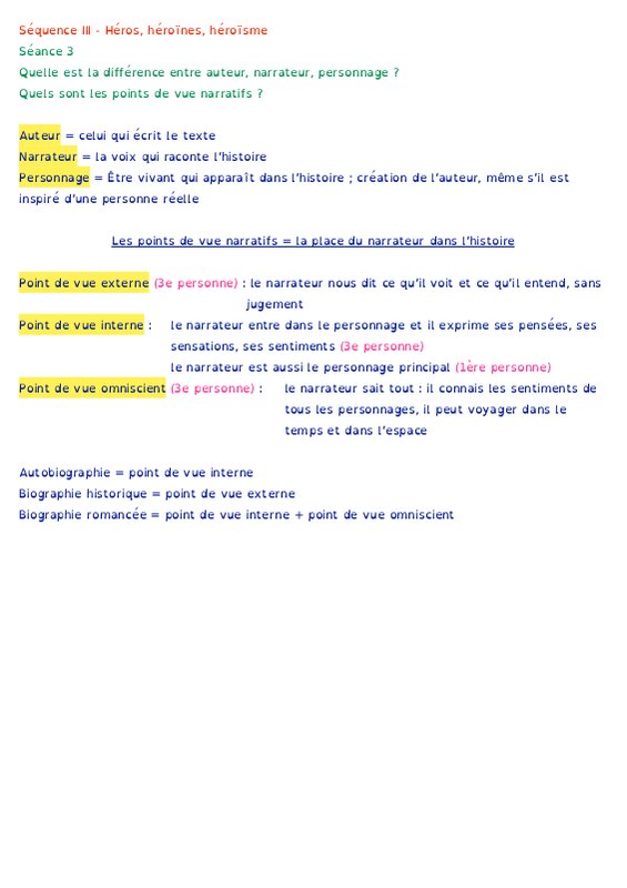 Il existe 3 points de vue (3 focalisations) : - narrateur ou point de vue externe : le lecteur assiste à la scène comme un spectateur. Il n'a pas accès aux pensées des personnages. Souvent narrateur à la troisième personne du singulier (il/elle).- narrate...