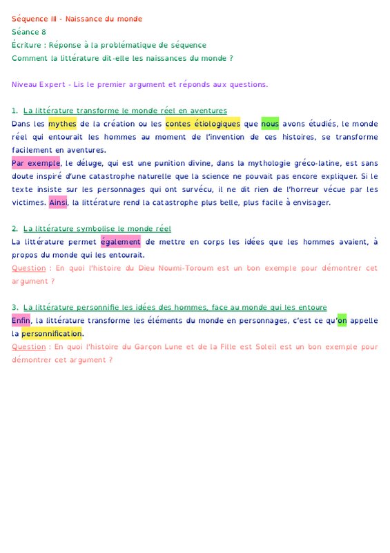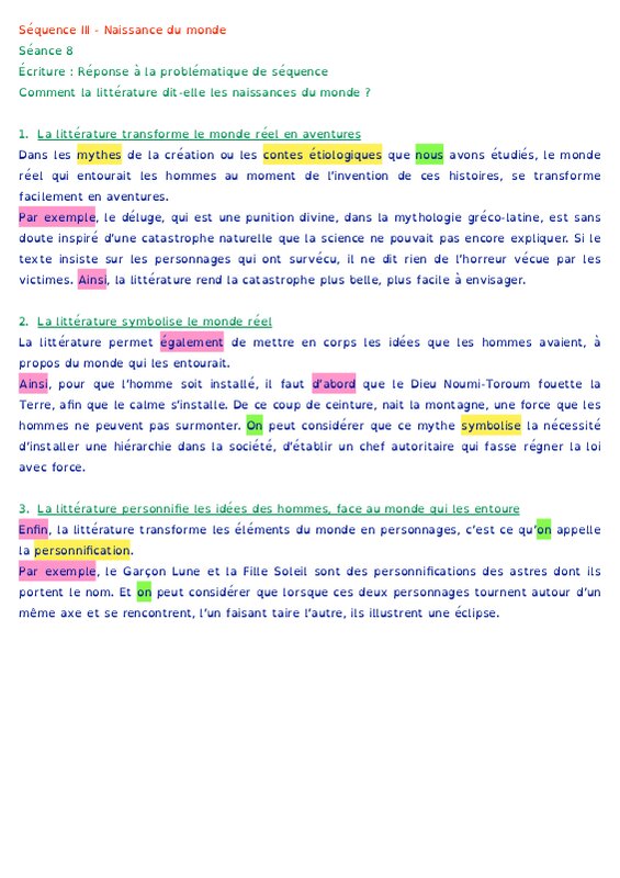 Efficace - Naissance du monde - Réponse à la problématique
