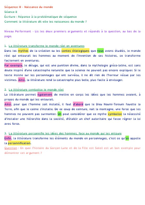 Séquence en 6e - Oeuvre intégrale